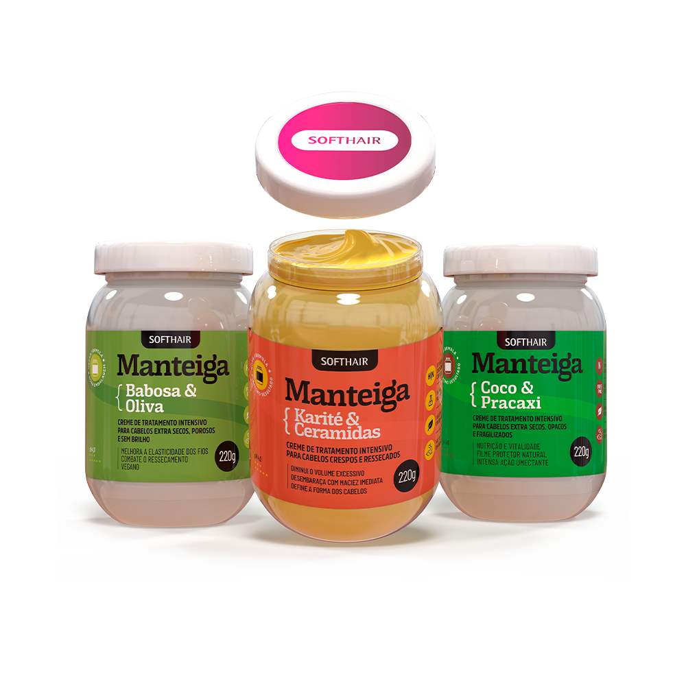 As manteigas emolientes promovem uma hidratação profunda, restaurando o equilíbrio hídrico dos fios e devolvendo sua maleabilidade natural.