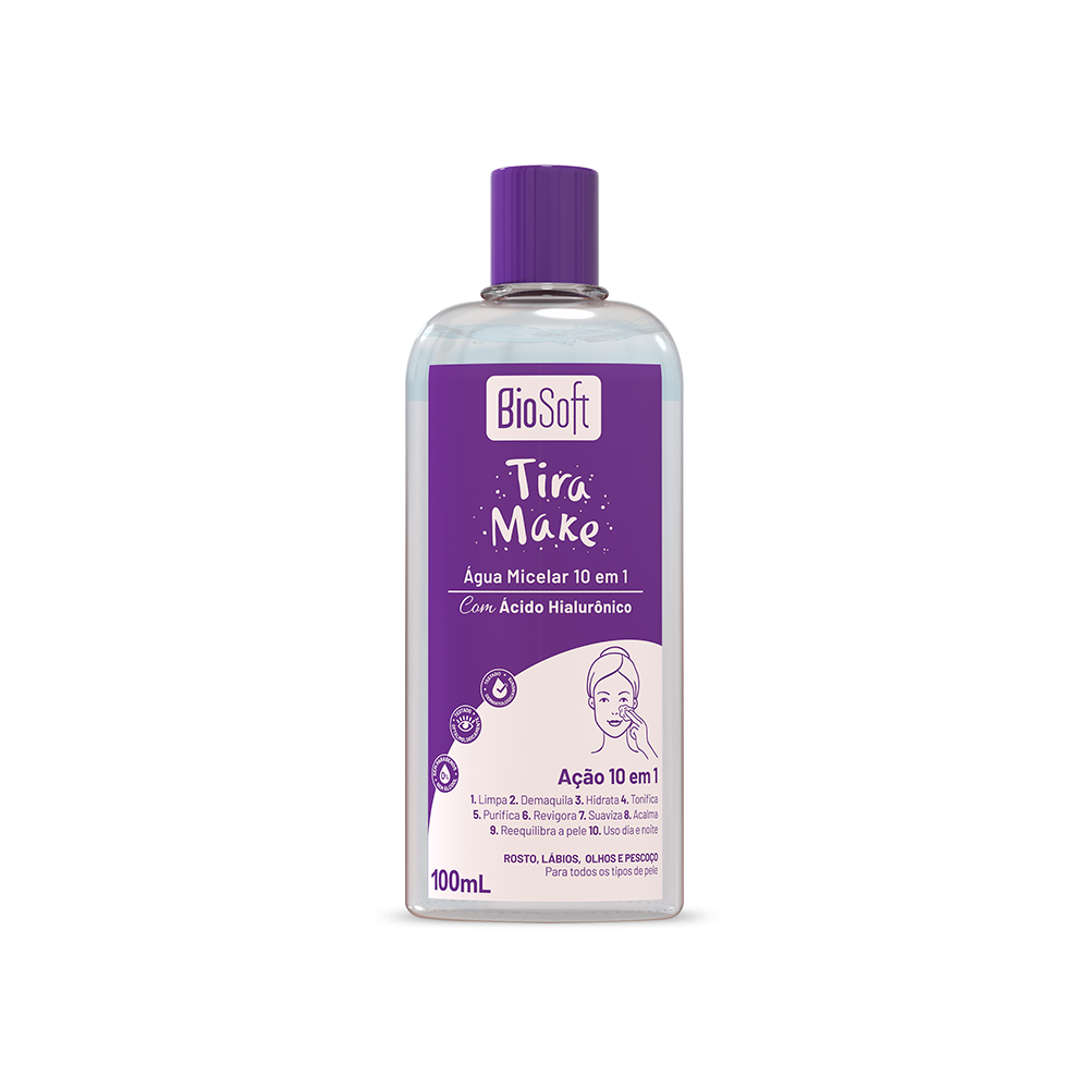 O Tira Make Bio Soft é uma água micelar suave e multifuncional, ideal para remover maquiagens leves e resíduos de protetor solar no dia a dia. Formulada com Ácido Hialurônico, hidrata e ajuda a manter a elasticidade e o equilíbrio natural da pele, enquanto as micelas capturam impurezas de forma eficaz, sem agredir. Com ação 10 em 1, limpa, demaquila, hidrata, tonifica, purifica, revigora, suaviza, acalma, reequilibra a pele e pode ser usado de dia e à noite. O resultado é uma pele macia, fresca e com toque suave, pronta para receber outros cuidados.